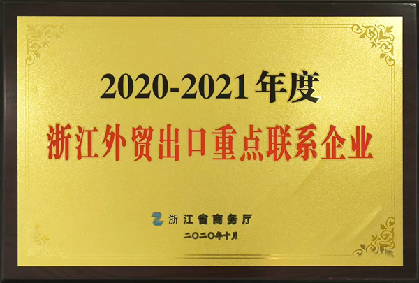 Won the title of "Key Contact Enterprises for Zhejiang Foreign Trade Export in 2020-2021"