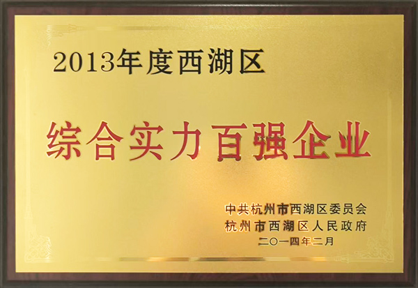Won "Top 100 Enterprises of Comprehensive Strength in West Lake Region of 2013"